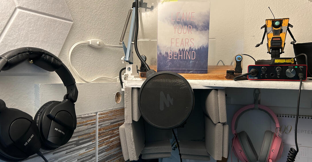 Home Studio: Dedicated acoustically treated recording studio, pop-filter, wind filter